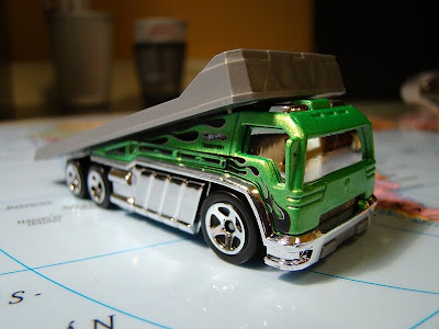 Alatta meg már tesóm Back Slider-je. Én tuti nem vettem, volna ilyen autót, mert alapvetően nem szeretem a HW mindenféle futurisztikus munkáit, de ez egész korrekt kis modell lett, ráadásul így már van autószállítónk is... :) A harmadik jószág pedig egy moci, méghozzá egy Bad Badger. Úgy volt, hogy tesóm gyűjti majd a mocikat, de úgy látszik, mellettük azért néhány négykerekű is be fog csusszanni... :)